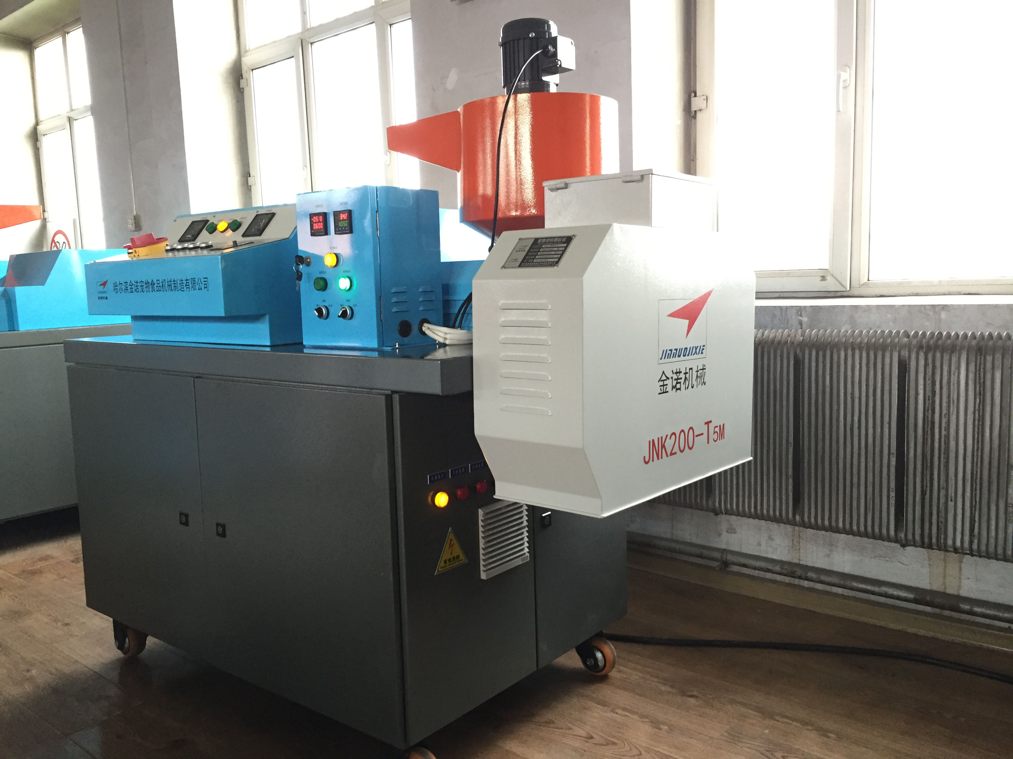 狗糧加工設備JNK200-T5M:1。JNK200-T5M型狗糧加工設備安裝方便、出廠已經(jīng)試機,狗糧機切刀采用直角切刀技術,調試簡單;2。狗糧設備的主軸和切刀小軸均可隨時注入耐高溫潤滑脂,延長狗糧機的軸承使用壽命;3。JNK200-T5M狗糧設備每小時生產狗糧顆粒200公斤。